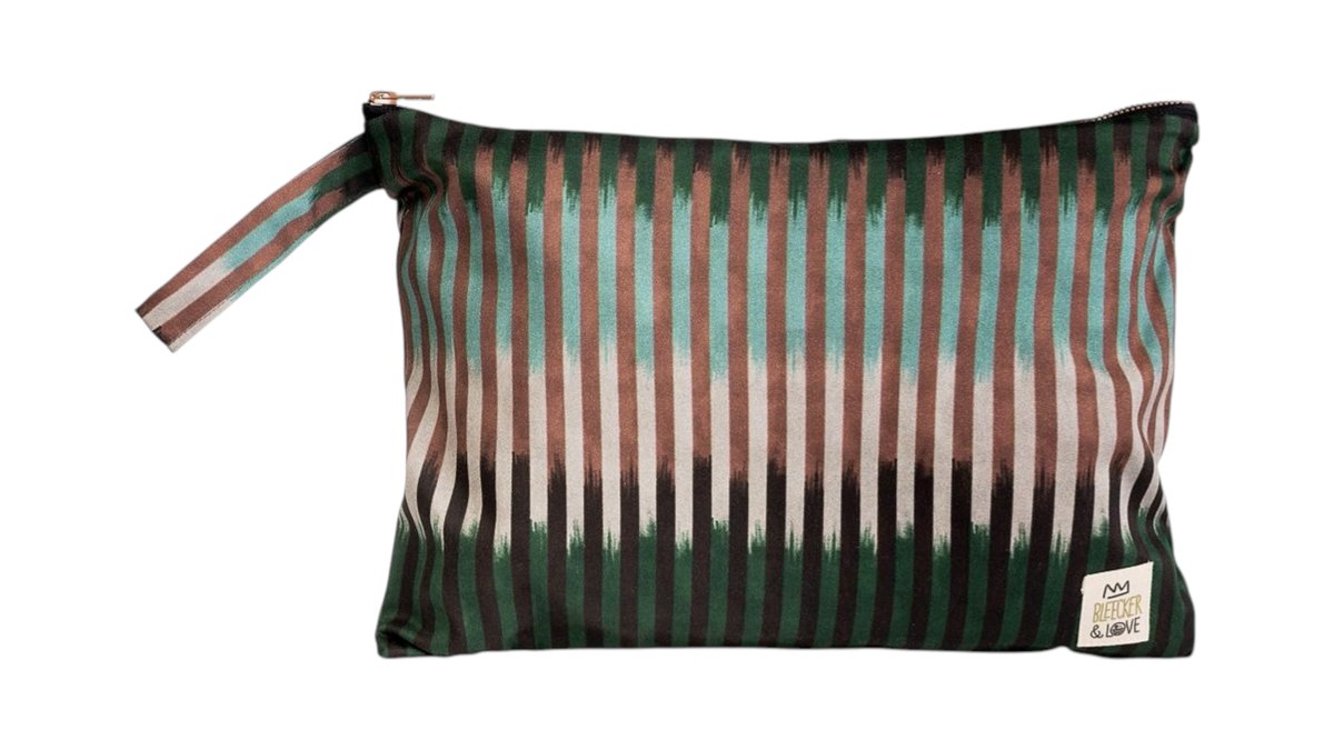 Our best-selling signature Bleecker Bag comes in two sizes, countless designs and has endless uses. It is flat and easy to pack. It can be used from an insert for safekeeping your belongings in your handbag, to an evening clutch. Dimensions: L35 x H25 cm Material: Cotton or woven textile, waterproof lining Machine wash cold, do not tumble dry ♡ Please note bag patterns will vary due to textile design ♡