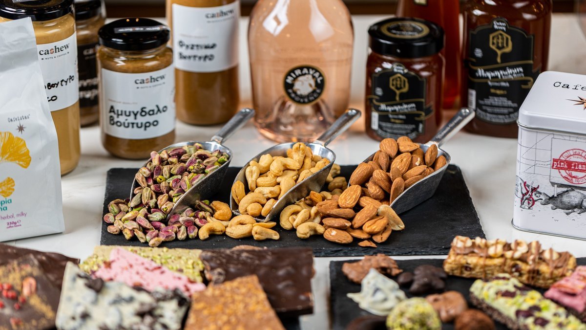 Το Cashew προσφέρει εκλεκτούς ξηρούς καρπούς, χειροποίητες σοκολάτες, μπάρες δημητριακών και άλλα εκλεκτά εδέσματα, καθώς και γευστικούς και φρεσκοαλεσμένους καφέδες αλλά και αρωματικές ποικιλίες τσαγιού!