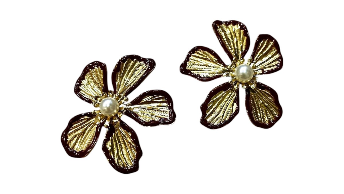 Επιχρυσωμένα σκουλαρίκια από ατσάλι με σμάλτο σε μπορντό χρώμα