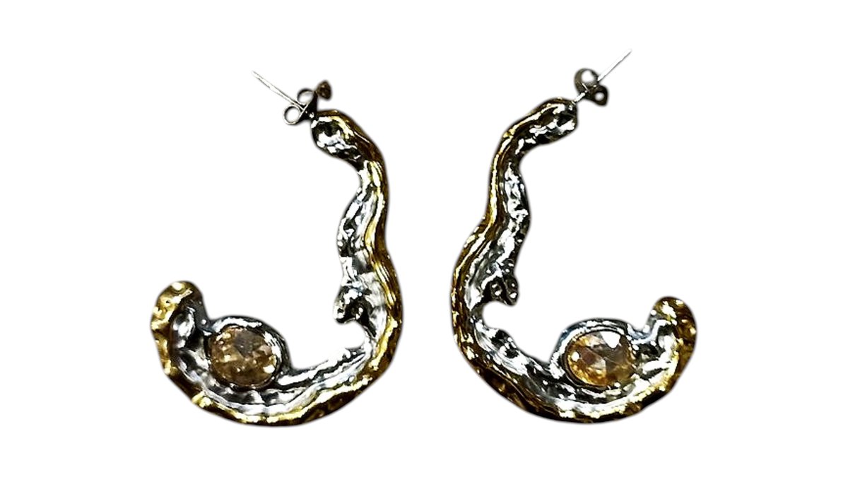 Σκουλαρίκια ατσάλινα δίχρωμα σφυρήλατα κίτρινο και λευκό χρώμα με πέτρα!!!
