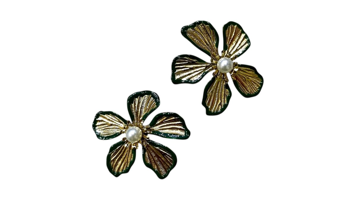 Επιχρυσωμένα σκουλαρίκια από ατσάλι με σμάλτο σε χακί χρώμα
