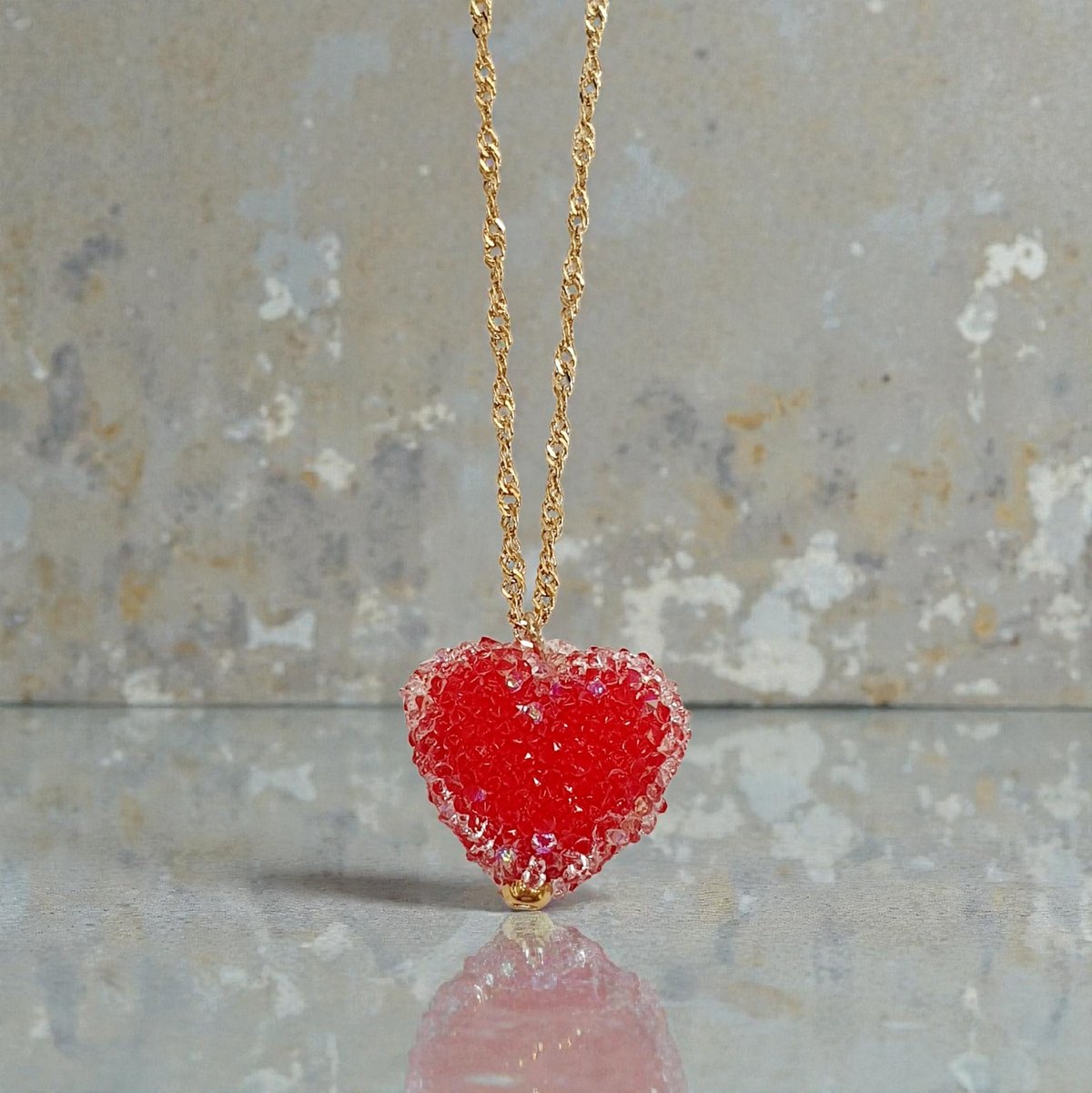 Diaxeirinis "Be My Valentine" Κολιέ καρδιά κόκκινη ζαχαρωτό με ατσάλινη αλυσίδα L316 σε χρυσό χρώμα