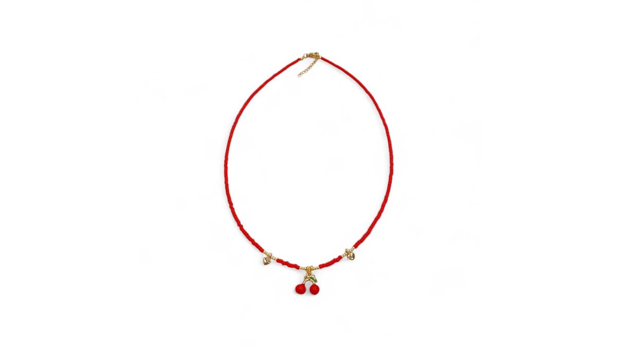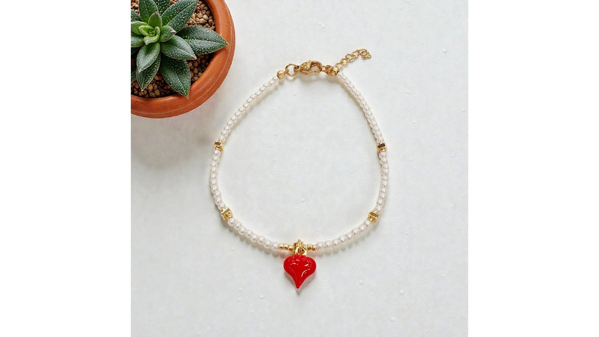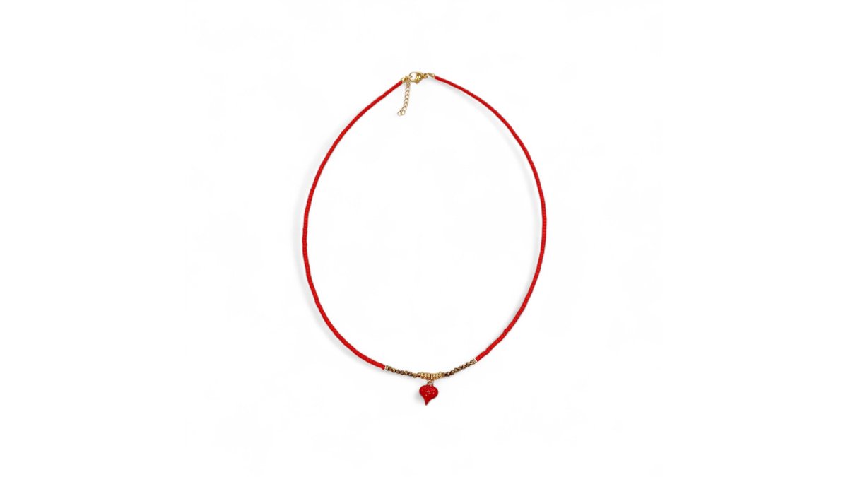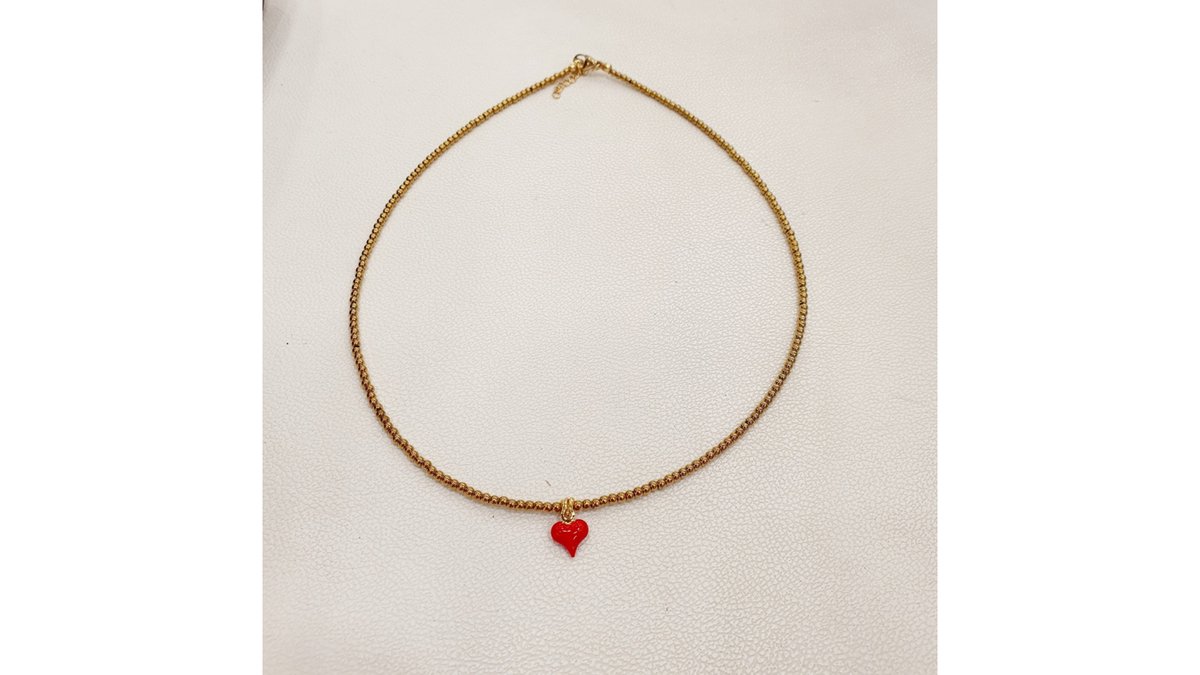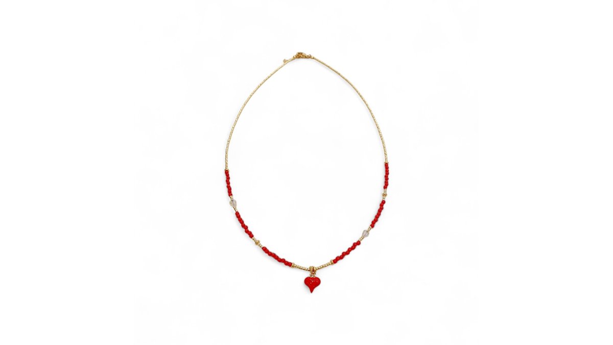 Diaxeirinis "Be My Valentine" Κολιέ χειροποίητο με καρδούλα κόκκινη με πέρλες με χρυσές λεπτομέρειες
