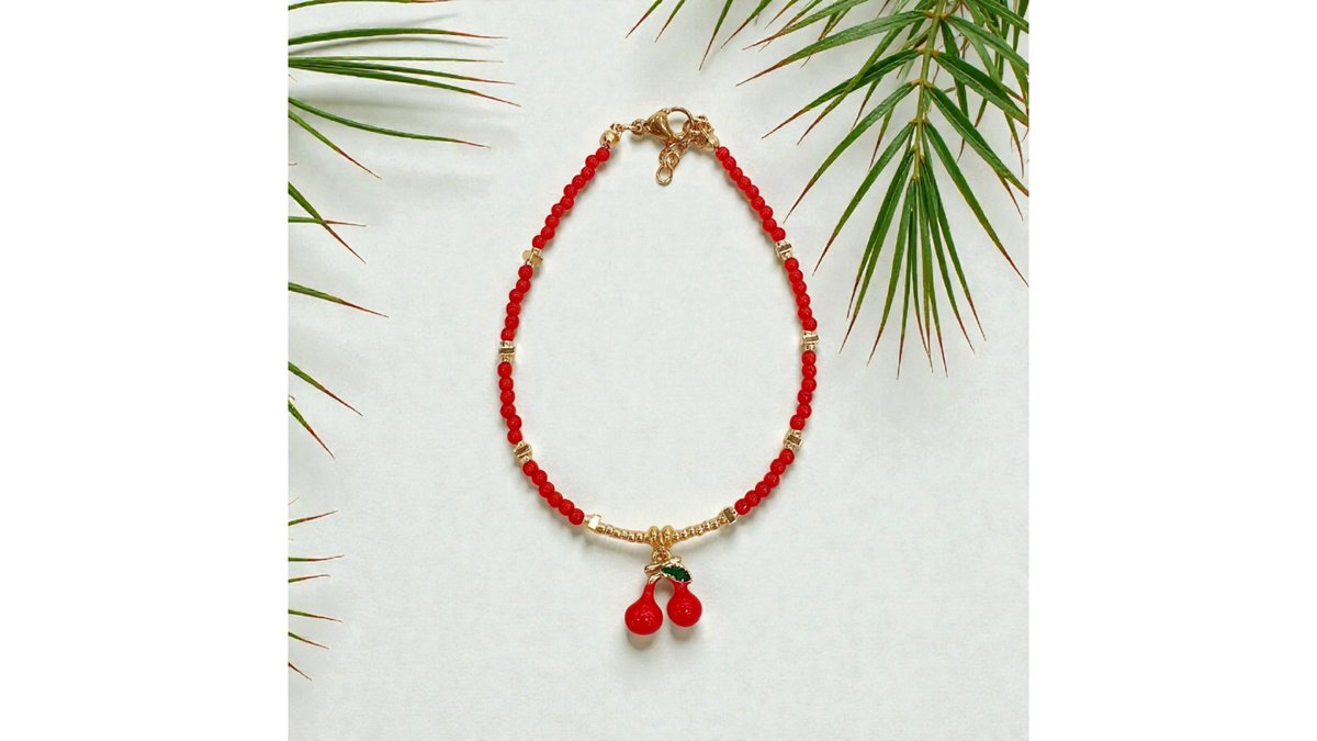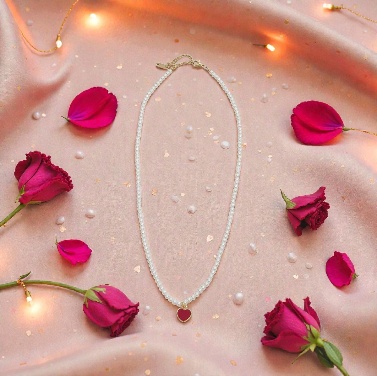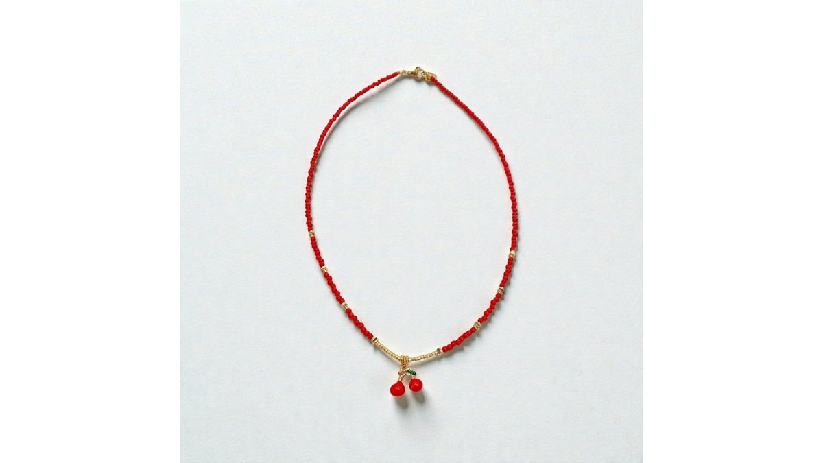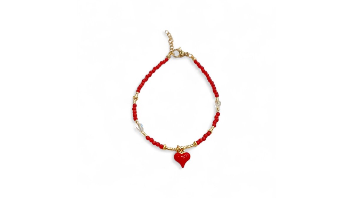 Diaxeirinis "Be My Valentine" Κολιέ χειροποίητο με καρδούλα κόκκινη με πέρλες με χρυσές λεπτομέρειες