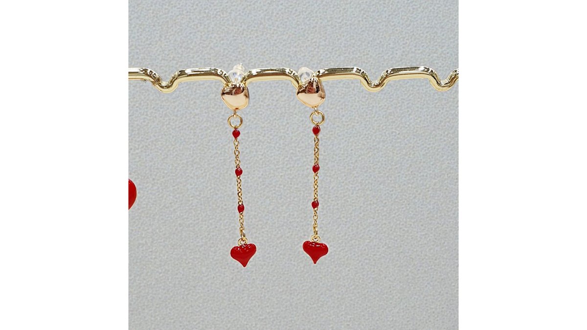 22,50 €Γυναικεία Σκουλαρίκια Καρδιές Με Glitter Κόκκινες Με Αλυσίδα Σε Χρυσό Χρώμα Και Λεπτομέρεια Στο Κούμπωμα