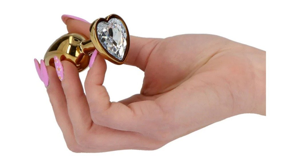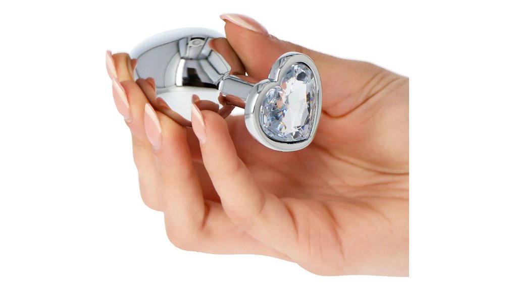 Μικρή Μεταλλική Πρωκτική Σφήνα Καρδιά Διάφανο