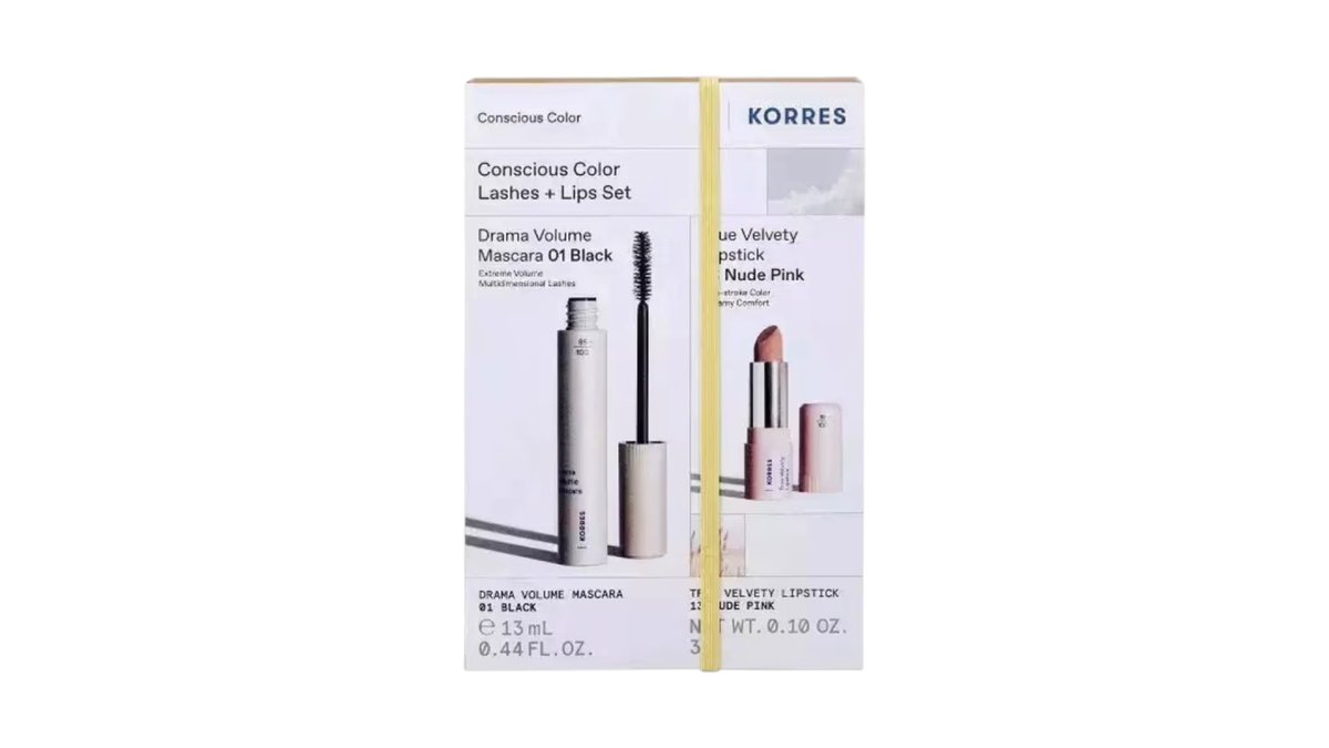 Korres Conscious Color Set Drama Volume Μάσκαρα για Έντονο Μήκος & Όγκο, 13ml & True Velvety Κραγιόν 13 Nude Pink