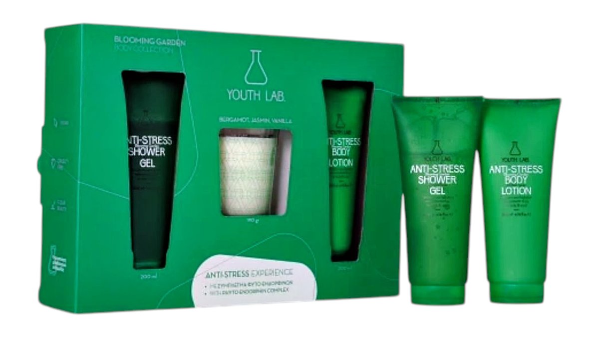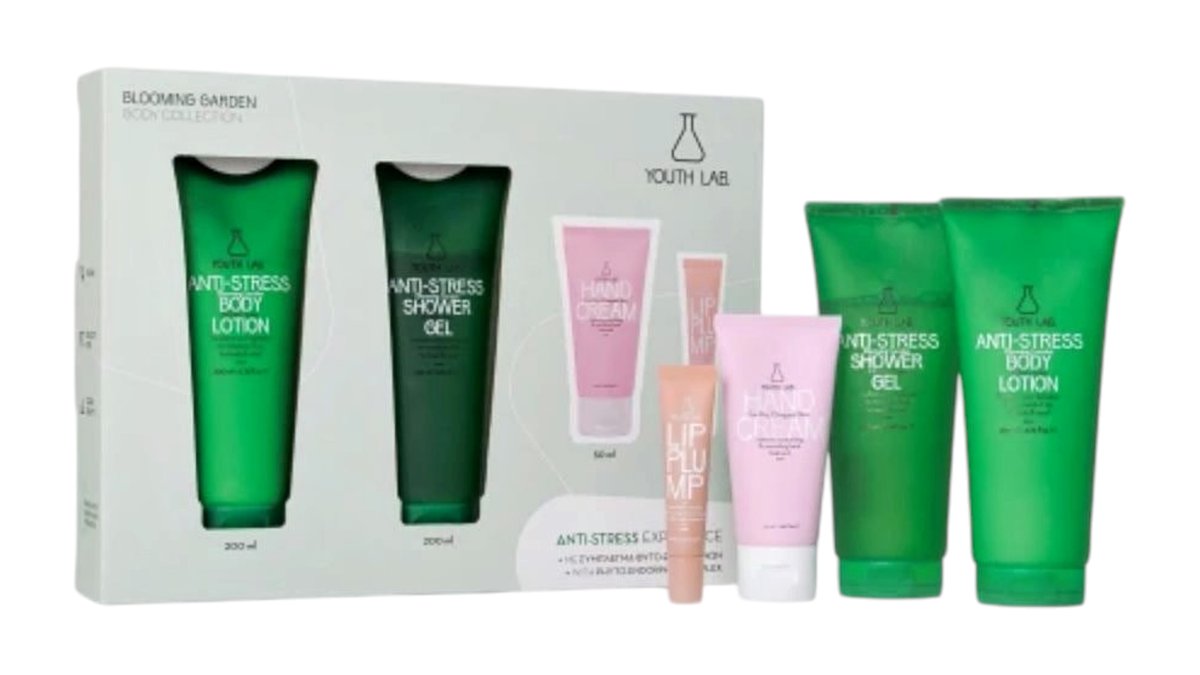Youth Lab. Promo Blooming Garden Anti Stress Shower Gel 200ml & Body Lotion,200ml & Hand Cream,50ml & Lip Plump Cherry Brown,10m