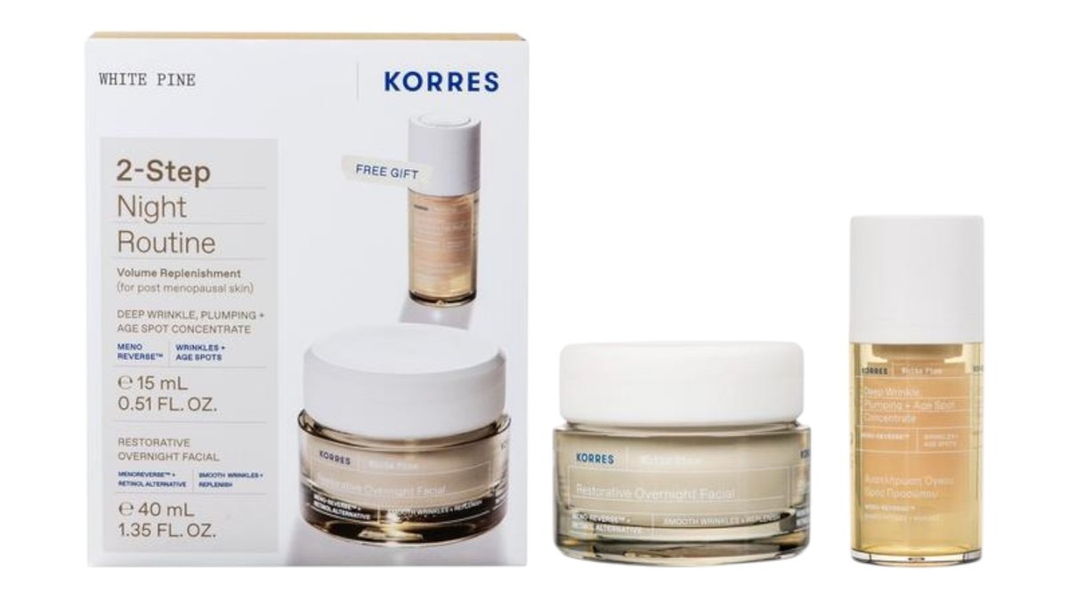 45,02 €50,02 €KORRES Λευκή Πεύκη Αναπλήρωση Όγκου Κρέμα Νύχτας 40 ml + ΔΩΡΟ Λευκή Πεύκη Αναπλήρωση Όγκου Ορός Προσώπου 15 ml, 55 ml