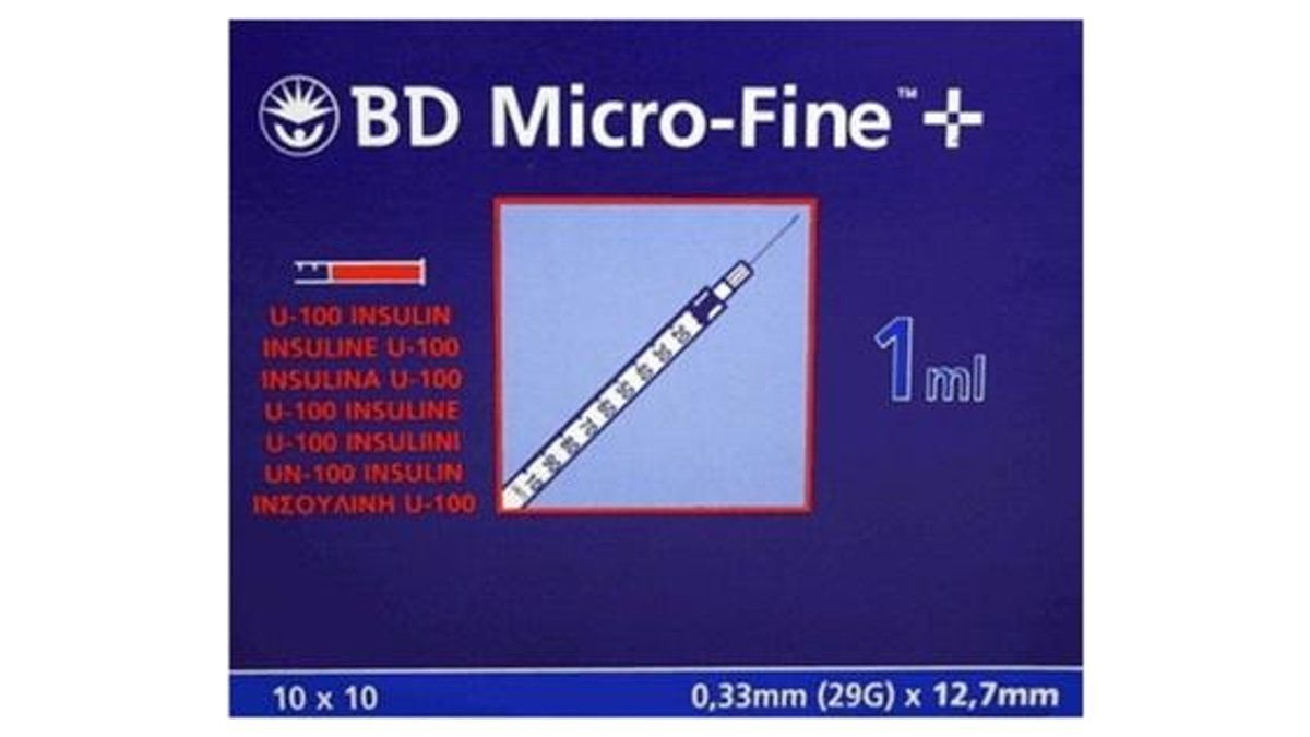 Bd Micro-fine+ Σύριγγες Ινσουλίνης 1 ml 29g 12,7mm 100 Τεμάχια