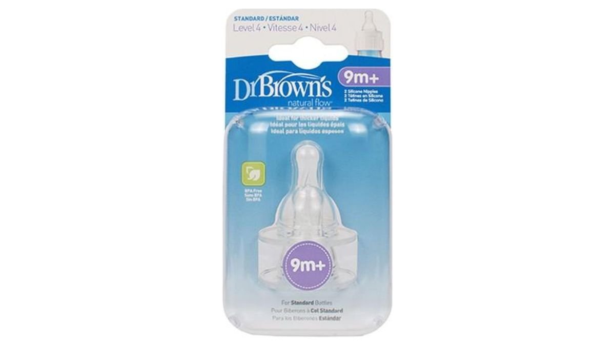 Dr Brown's Natural Flow Θηλή Σιλικόνης για Μπιμπερό με Φαρδύ Λαιμό 9M+ Επίπεδο 4 2 τμχ