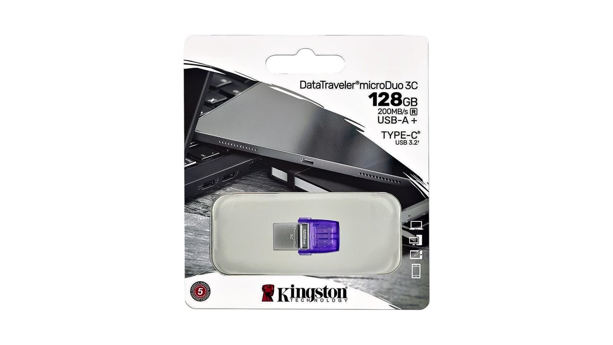 Kingston DataTraveler MicroDuo 3C 128GB USB 3.1 Stick με σύνδεση USB-A & USB-C Μωβ