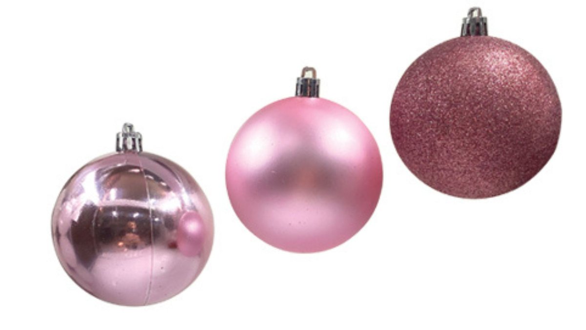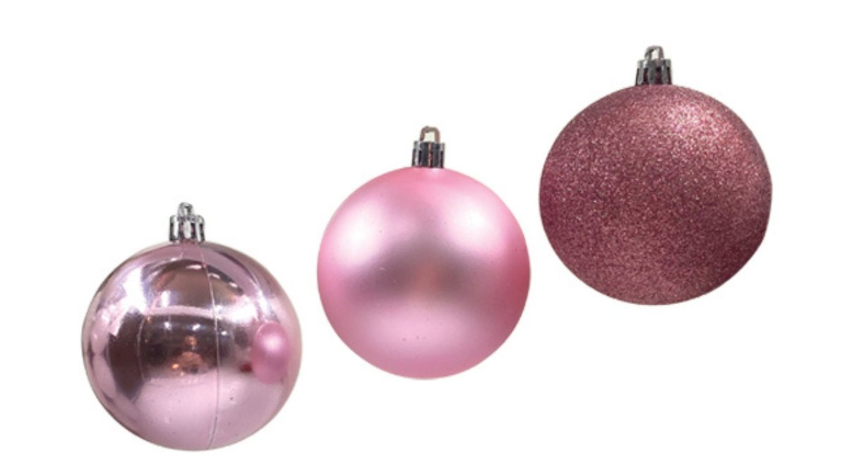 Σετ 12 Ροζ Χριστουγεννιάτικες Μπάλες 6cm