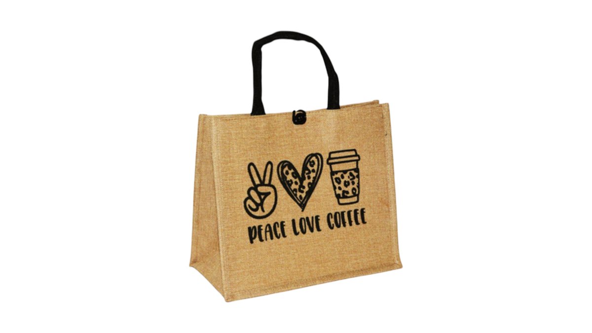 Πάνινη Τσάντα “Peace Love Coffee” Με Κούμπι 34×30×17cm
