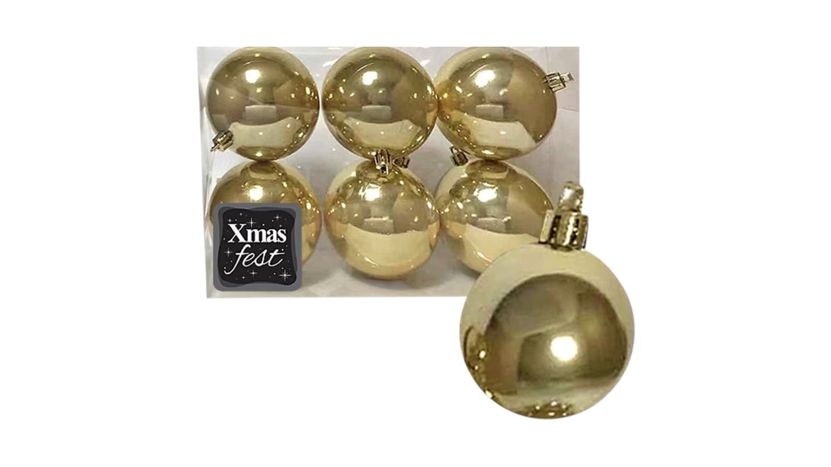Μπάλα Γυαλιστερή Χρυσαφί 6τεμ Φ8cm