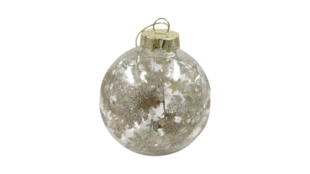 Διάφανη Χριστουγεννιάτικη Μπάλα Με Χρυσό Διακοσμητικό Φύλλα Φ8cm