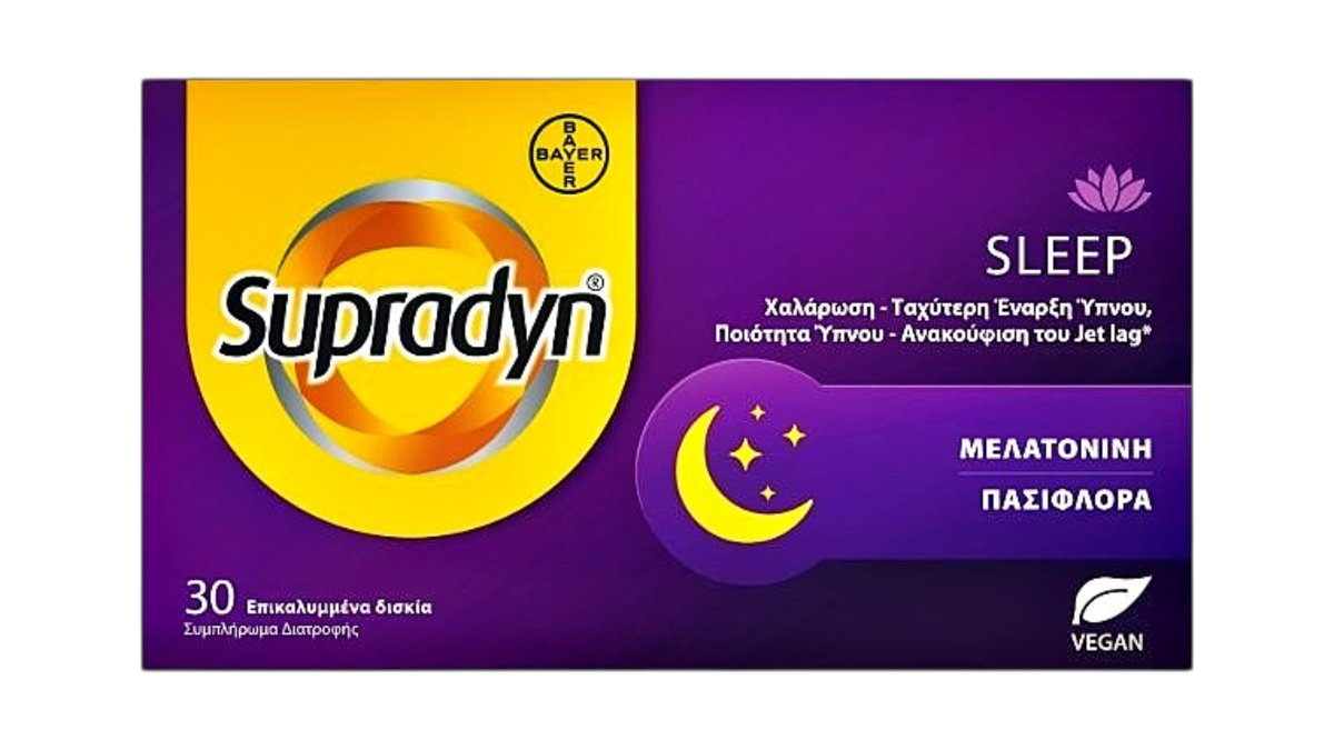 Supradyn Sleep για Χαλάρωση, Ταχύτερη Έναρξη Ύπνου, Ποιότητα Ύπνου. Ανακούφιση του Jet Lag 30 δισκία