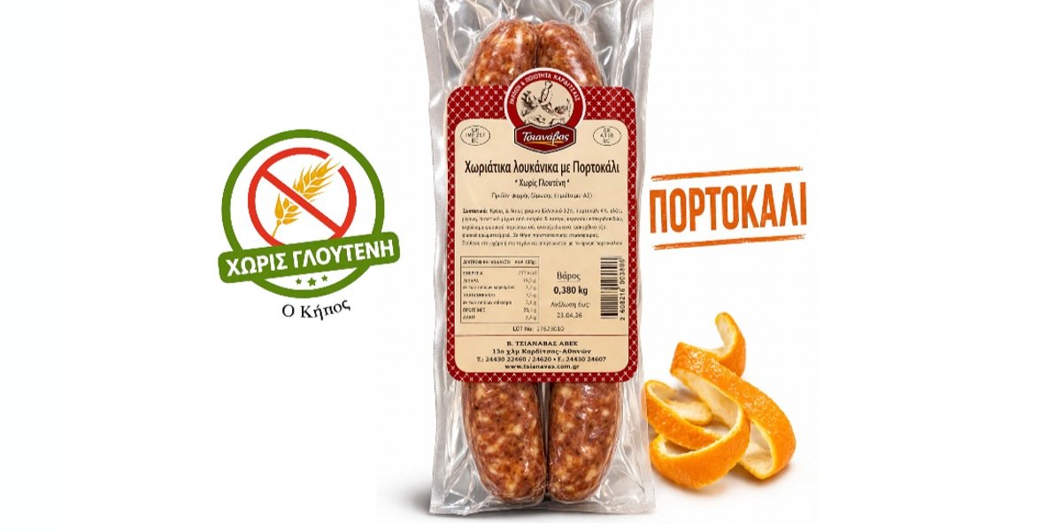 Πορτοκαλί Λουκάνικα Χωριάτικο Χοιρινό 400g Τσιανάβας