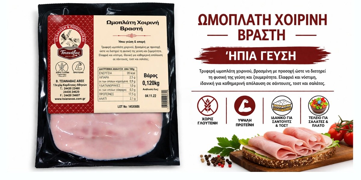 Ζαμπόν Βραστό Ωμοπλάτη Χαμηλά Λιπαρά Περ 150g Τσιανάβας