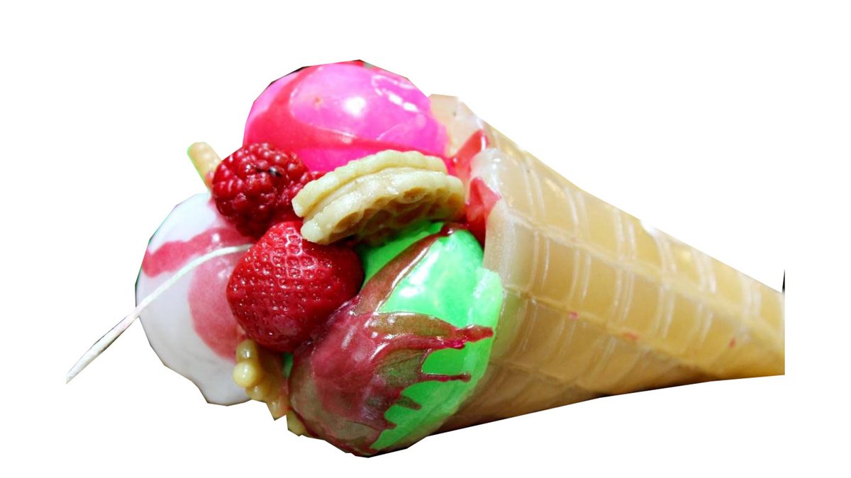 Χειροποίητη Λαμπάδα Χωνάκι Παγωτό Μηχανής με Φρούτα (Κ3053)