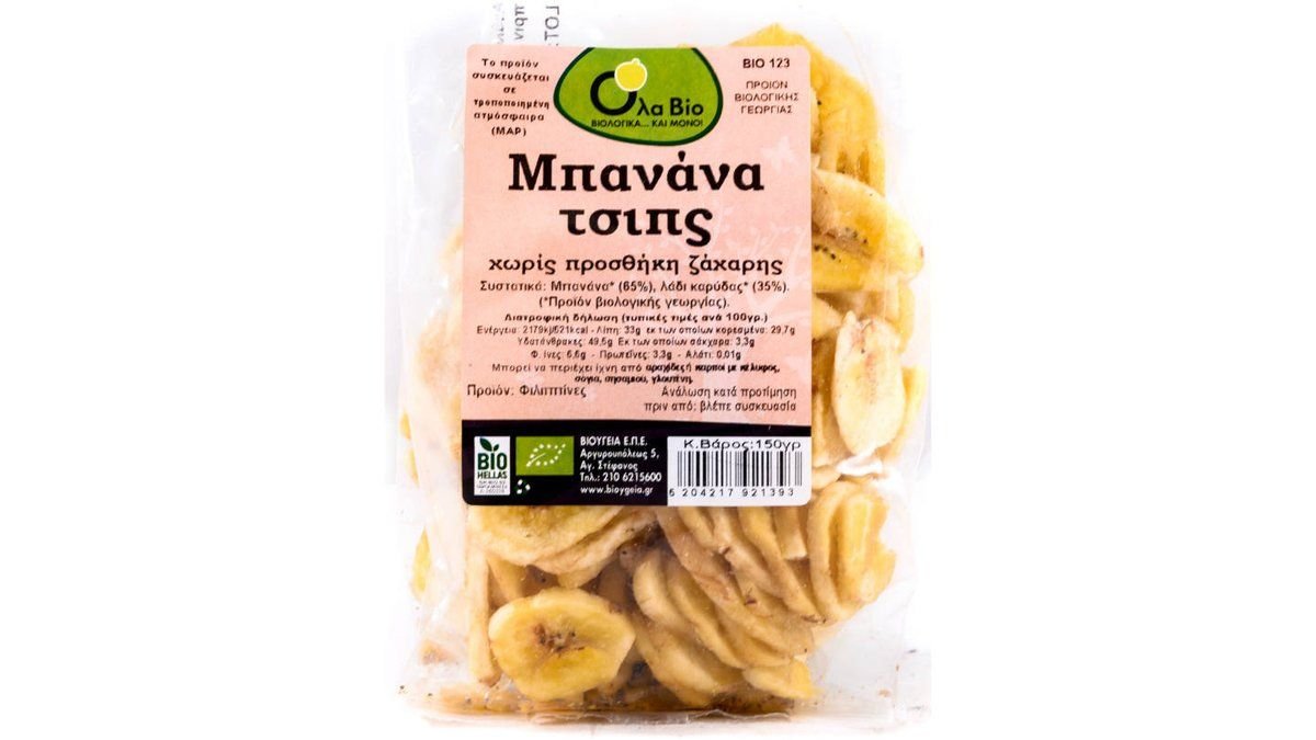 Βιο-Υγεία Μπανάνα Τσίπς χωρίς Ζάχαρη [Bio] 150 g