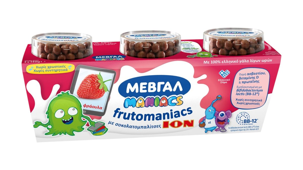 Μεβγάλ Frutomaniacs Επιδόρπιο Γιαουρτιού με Φράουλα & Σοκολατομπαλίτσες, (3x140 g), 420 g