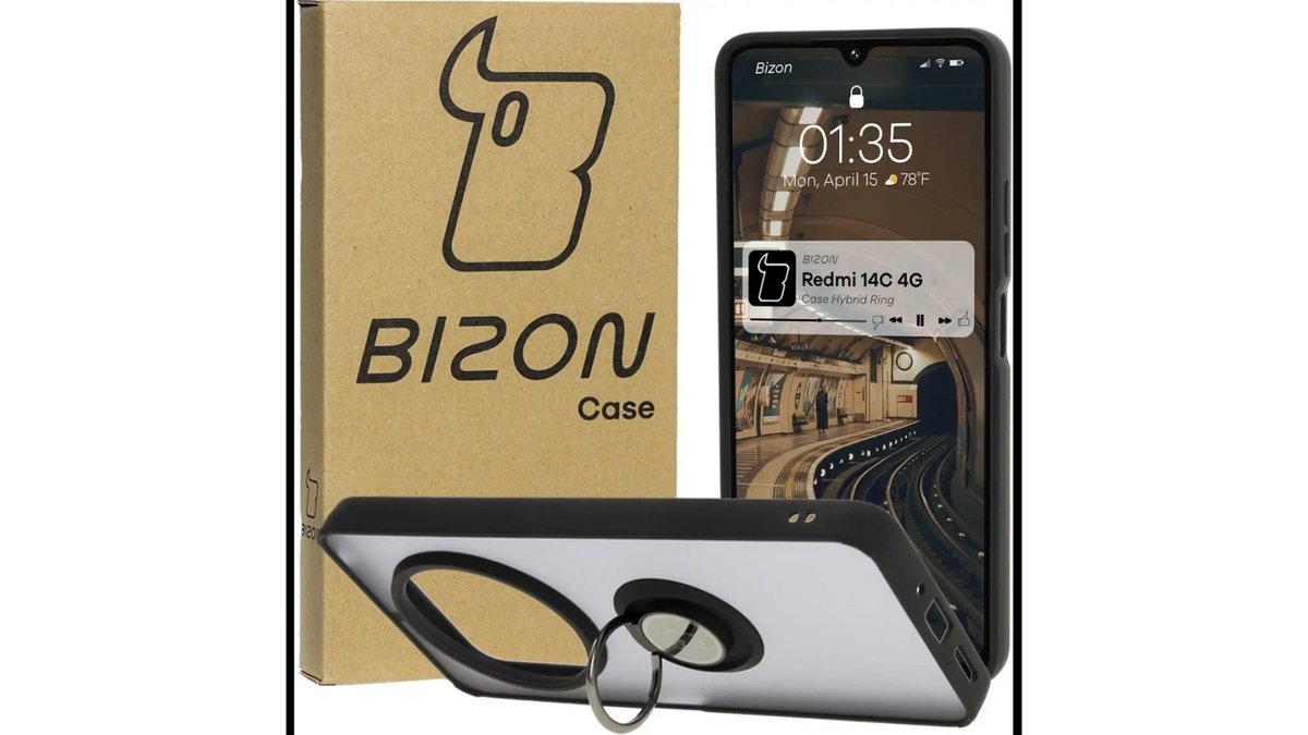 Θήκη Σιλικόνης Bizon Case Hybrid Ring For Xiaomi Redmi 14C 4G / POCO C75 smoky with a black frame