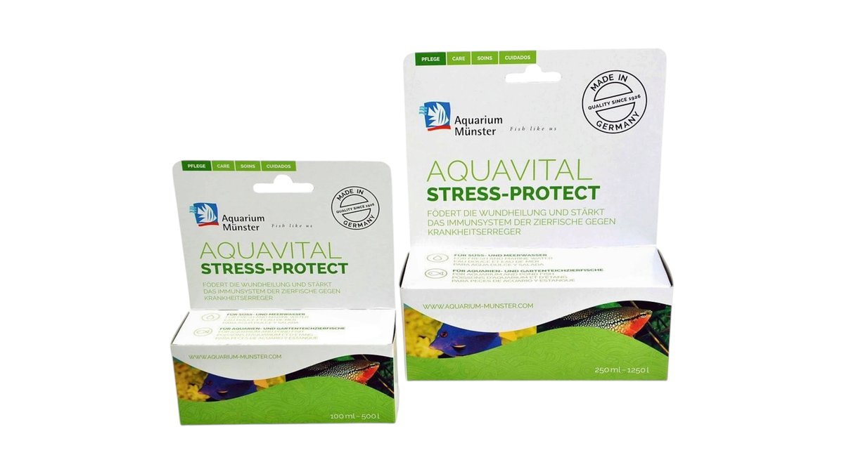 Συμπλήρωμα AQUAVITAL STRESS-PROTECT 250 ml της Aquarium Munster για ενίσχυσης ανοσοποιητικού των ψαριών.