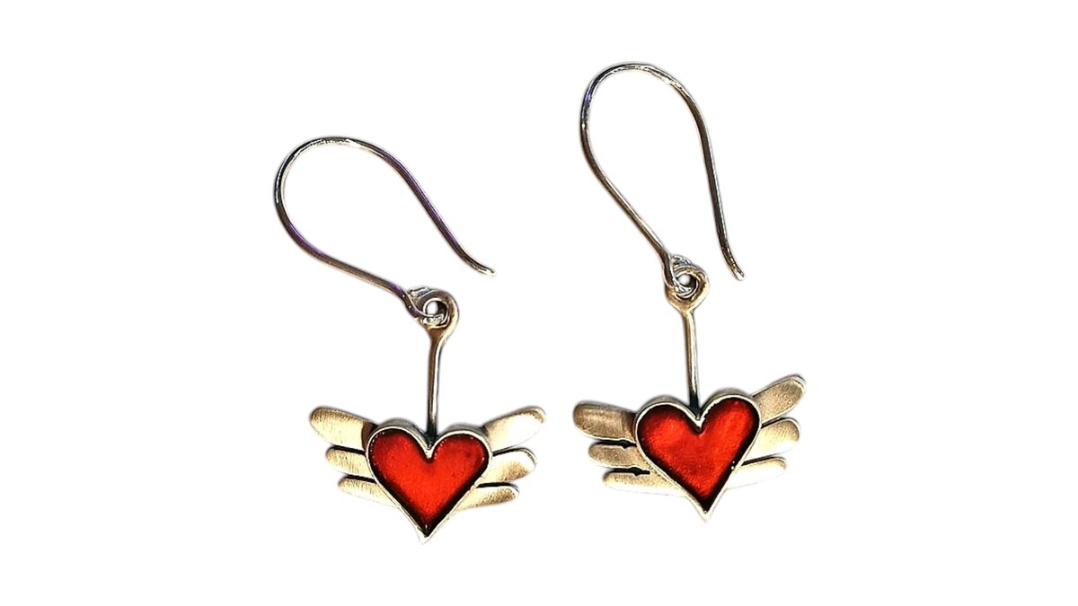 Σκουλαρίκια καρδιά με φτερά από ασήμι 925 by acme art