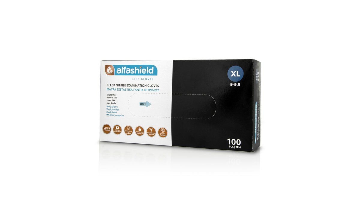 Alfashield Γάντια Νιτριλίου Χωρίς Πούδρα Μαύρο Xl 100 τμχ