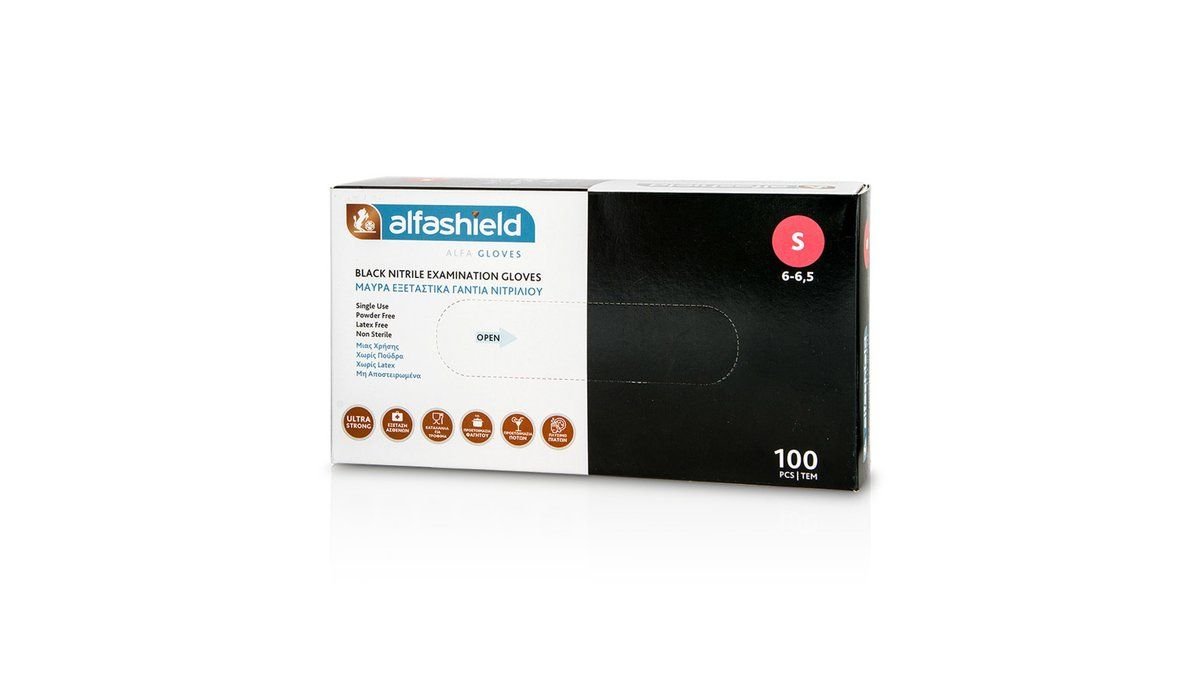Alfashield Γάντια Νιτριλίου Χωρίς Πούδρα Μαύρο S 100 τμχ