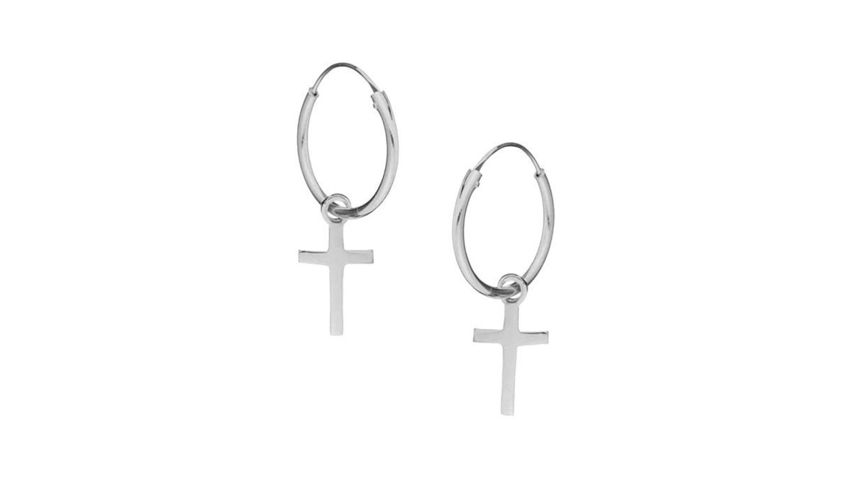 Σκουλαρικια Ασημί Κρίκοι με σταυρό