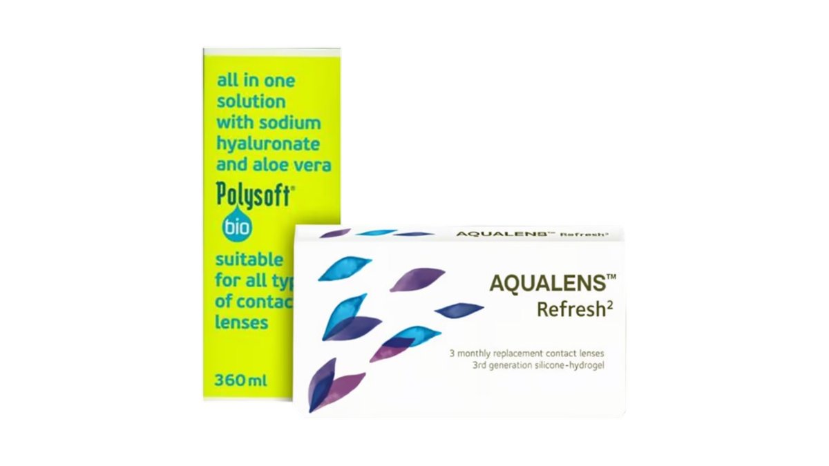 Aqualens Refresh 2 Μηνιαίoι Φακoί Επαφής Σιλικόνης Υδρογέλης & Υγρό PolySoft 360ml