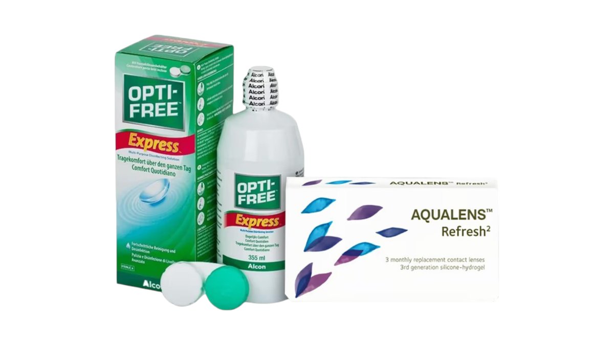 Aqualens Refresh 2 Μηνιαίoι Φακoί Επαφής Σιλικόνης Υδρογέλης & Opti-Free Express 355ml