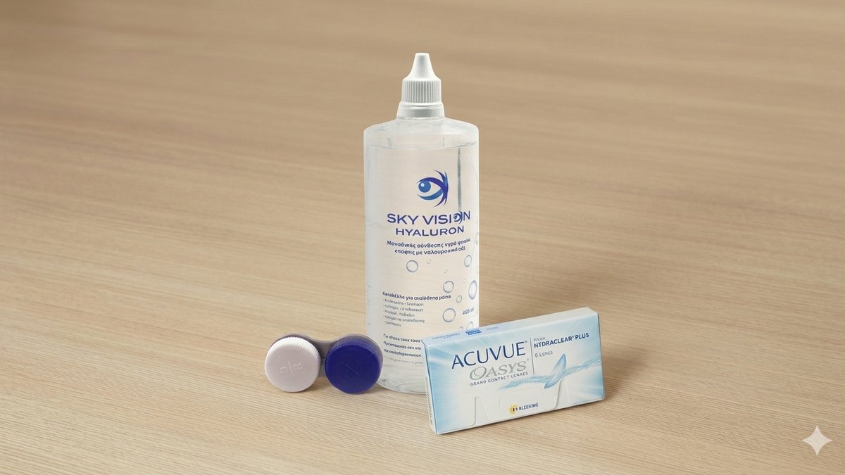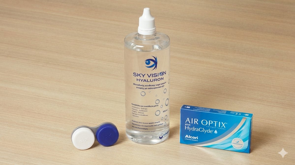 Air Optix plus Hydraglyde Μηνιαίοι φ.ε 6 pack & Υγρό SkyVision 400ml
