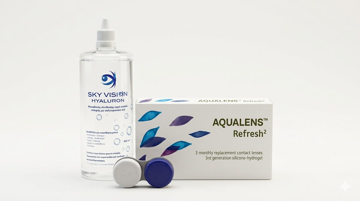 Aqualens Refresh 2 Μηνιαίoι Φακoί Επαφής Σιλικόνης Υδρογέλης & Υγρό SkyVision 400ml