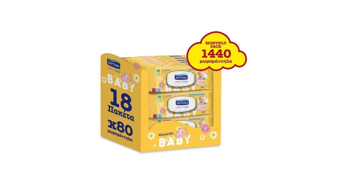 Septona Μωρομάντηλα με Χαμομήλι Calm N' Care Chamomile χωρίς Οινόπνευμα & Parabens Συσκευασία με Αυτοκόλλητο 1x80τμχ