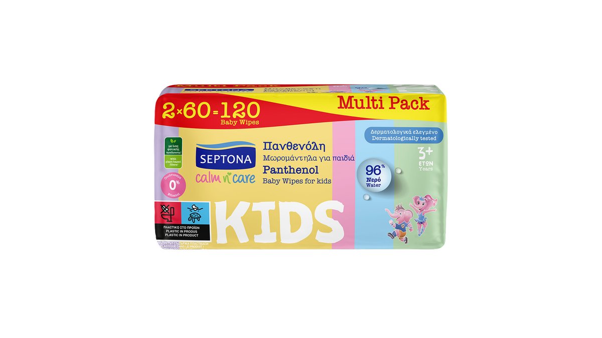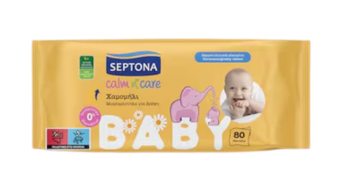 3,76 €Septona Calm N' Care Chamomile Μωρομάντηλα χωρίς Οινόπνευμα & Parabens με Χαμομήλι 3x80τμχ