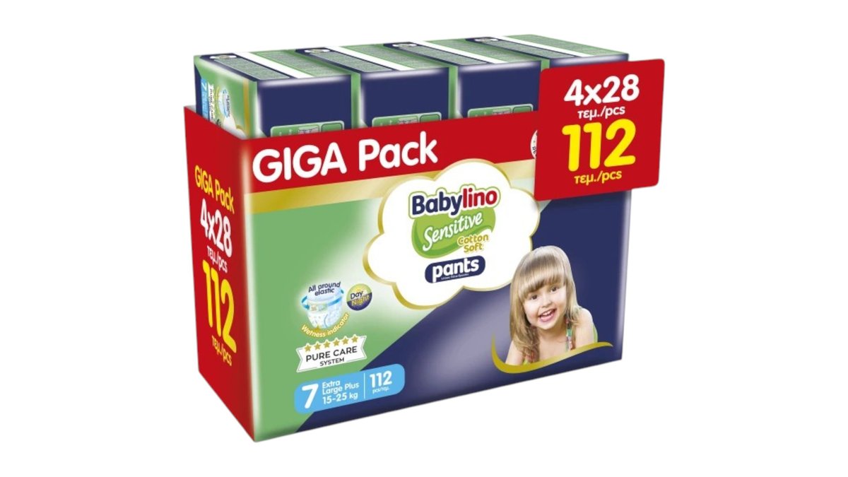 Babylino Sensitive Cotton Soft Pants Πάνες Βρακάκι No. 7 για 15-25kg 112τμχ