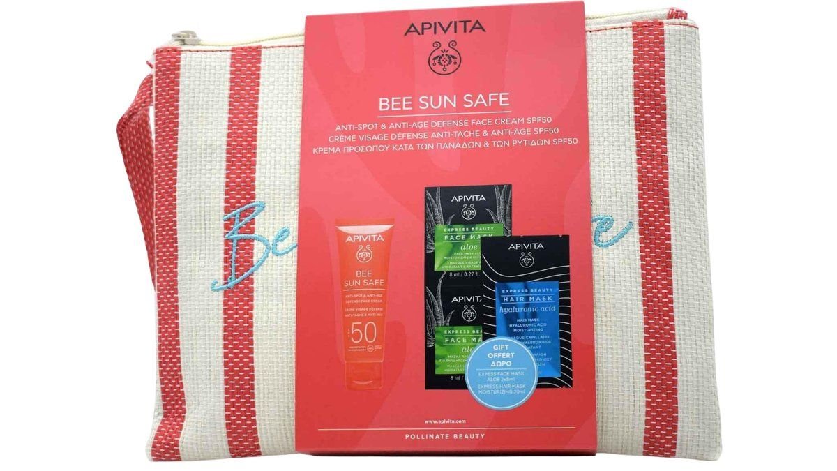 Apivita Promo Pack Bee Sun Safe Καταπραϋντική Κρέμα Προσώπου Spf50+ 50 ml Me Δώρο Face Mask Aloe 2X8 ml & Hair Mask 20 ml