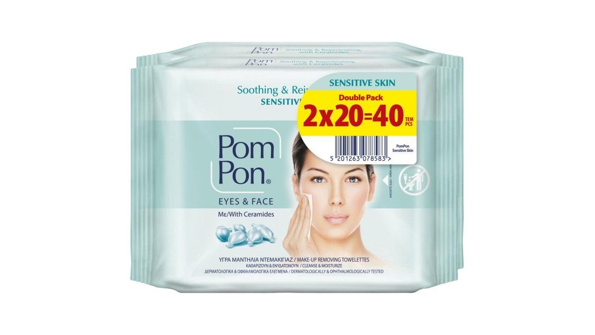 Pom Pon Υγρά Μαντήλια Ντεμακιγιάζ Sensitive Skin, (2x20 τμχ), 40 τμχ