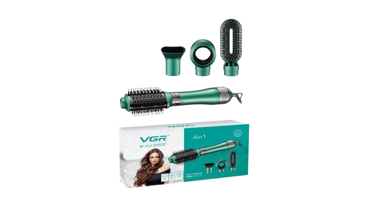 VGR V-493 4‑in‑1 Professional Hot Air Styler 1000W – Ηλεκτρική Βούρτσα Μαλλιών με Αέρα & 4 Εξαρτήματα Styling