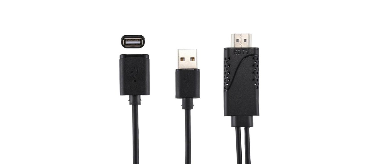 1080P USB 2.0 Male + USB 2.0 Female to HDMI HDTV AV Adapter Cable for iPhone / iPad, Android Smartphones(Black)