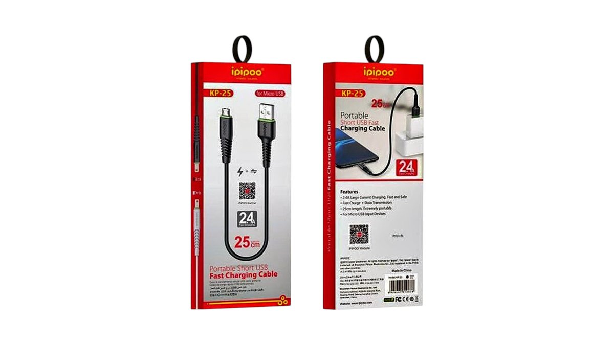 Καλώδιο Σύνδεσης / Φόρτισης Micro USB Ipipoo KP-25 Fast Charging Cable 2.4A 0.25m Μαύρο