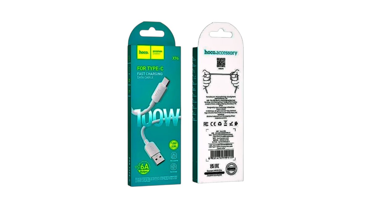 USB-A to USB-C Cable Hoco X96, 100W, 5A, 1m, White