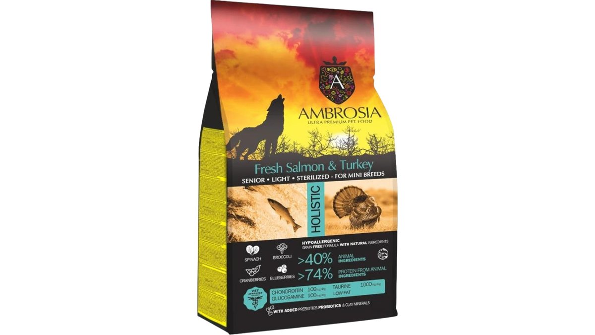 Αmbrosia For Mini Breeds 5kg Senior-Light-Sterilized Με Σολομό Και Γαλοπούλα Για Μικρόσωμους Σκύλους Όλων Των Φυλών