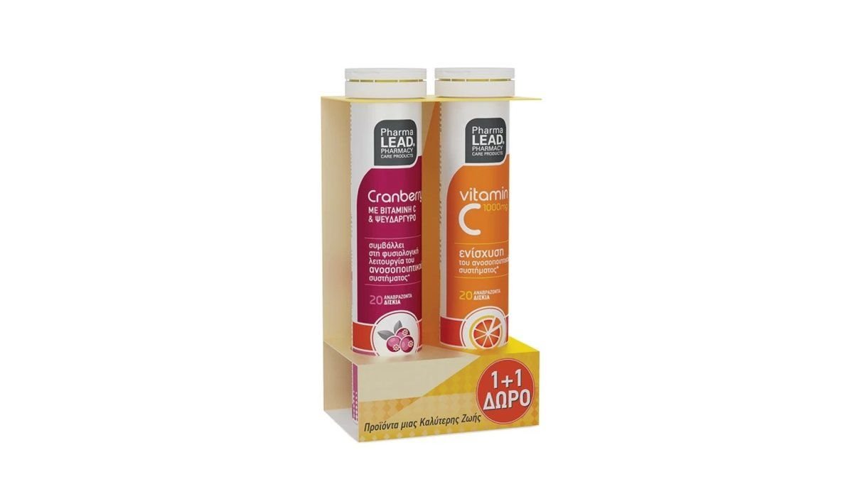 Pharmalead Cranberry 20 Αναβράζοντα Δισκία Φρούτα Του Δάσους & Δώρο Vitamin C 1000 mg 20 Αναβράζοντα Δισκία Πορτοκάλι