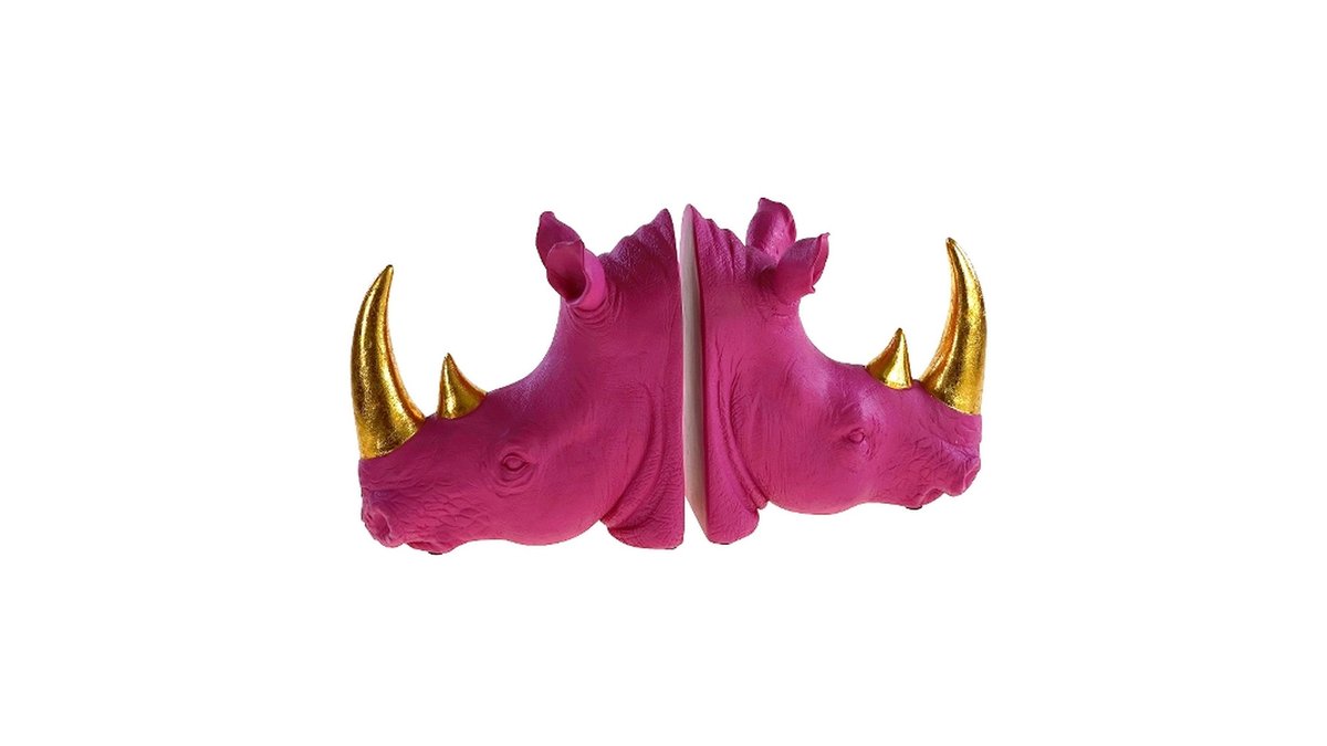 S/2 Bookend Rhino, magenta poly/stone powder