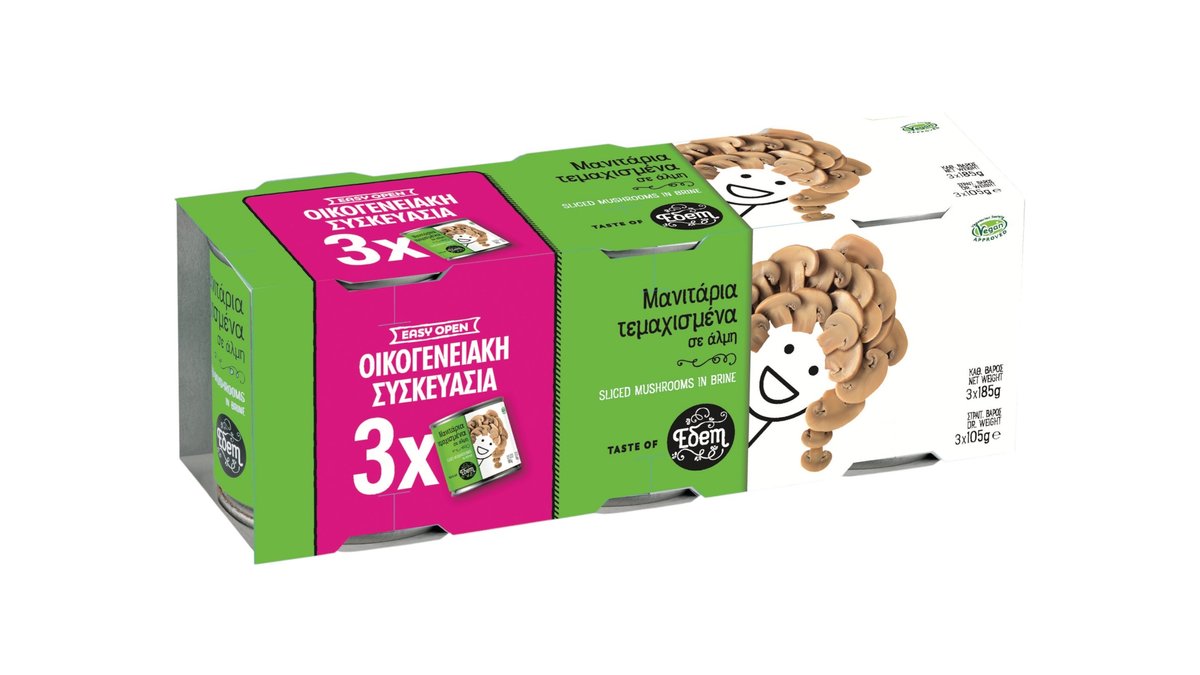 Εδέμ Μανιτάρια Τεμαχισμένα, (3x185 g), 555 g