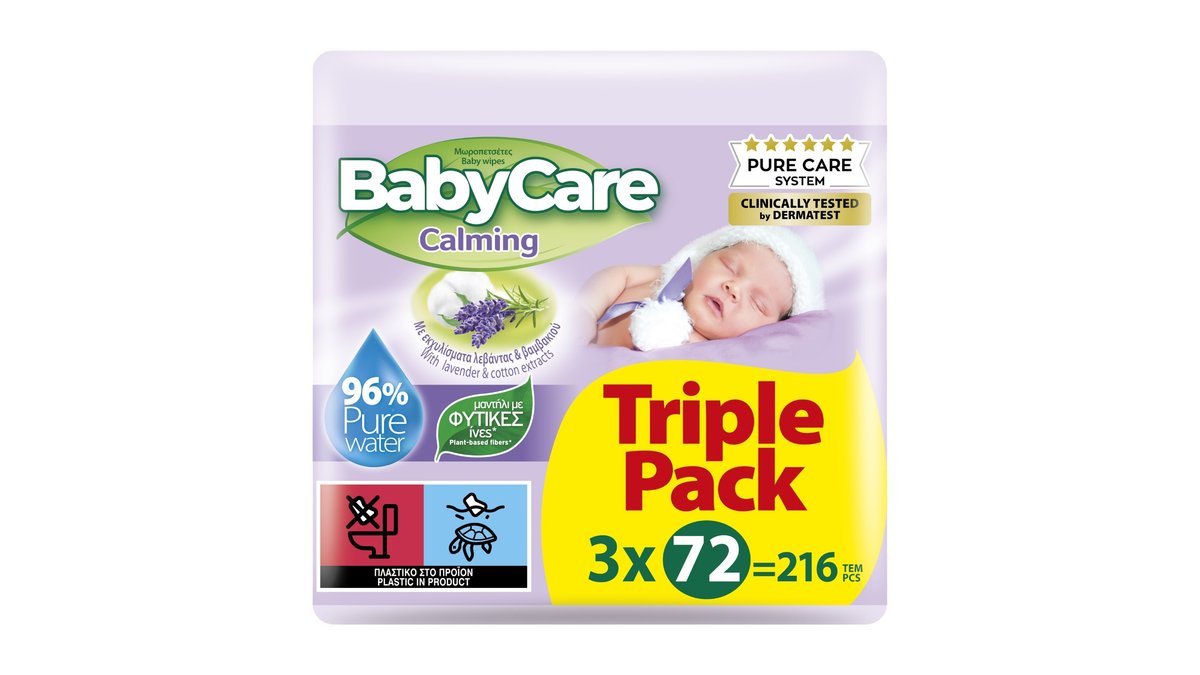 BabyCare Calming Μωρομάντηλα με Λεβάντα & Βαμβάκι 3x72 τμχ, 216 τμχ